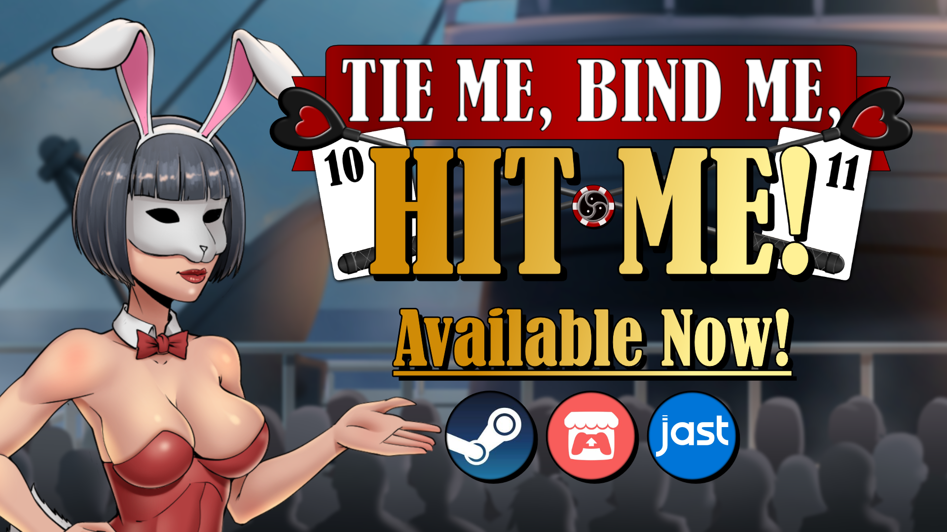 The wait has finally ended. Tie Me, Bind Me, HIT ME! is now available for anyone who wants to experience a BDSM take on the classic game of Blackjack. I want to, of course, thank those who help support my work; without them, this game could not be made, and I hope the continued support and the sales of this game will help aid in getting the long-awaited Wrapturous Adventure completed. Again, thanks all, and I hope you enjoy Tie Me, Bind Me, HIT ME! and look forward to my other projects.